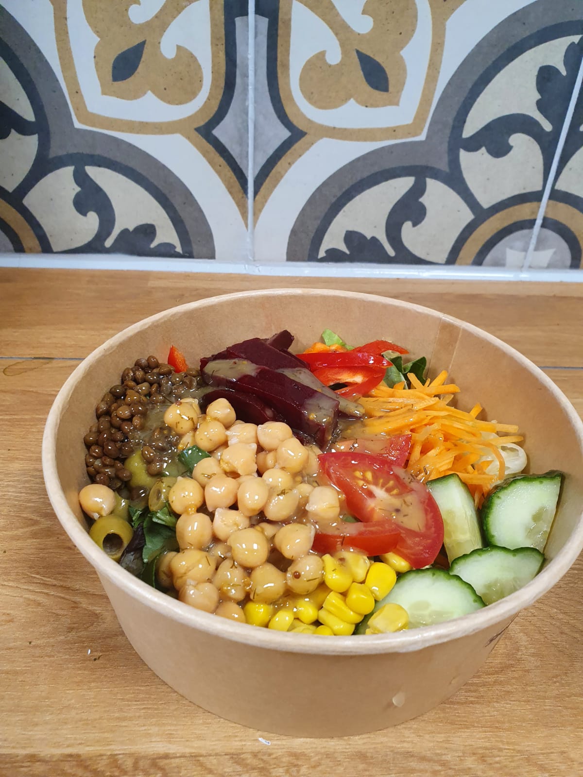 Bij ons kan je terecht voor een heerlijke vegan salade. Je kunt zelf de ingredienten bepalen, of kies voor onze wisselende verrassings salade